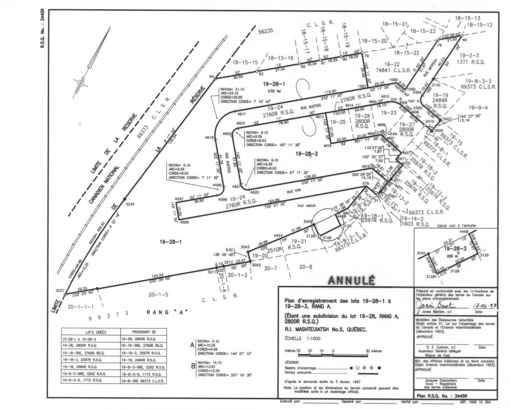PLAN D'ENREGISTREMENT DES LOTS 19-28-1 À 19-28-3, RANG A (ANNULÉ). (fra; CAN)
