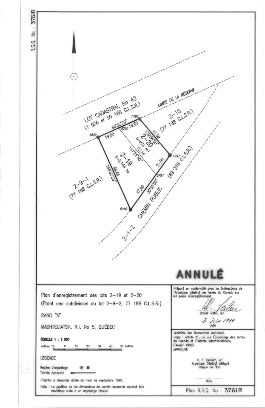 PLAN D'ENREGISTREMENT DES LOTS 2-19 ET 2-20, RANG A (ANNULÉ). (fra; CAN)